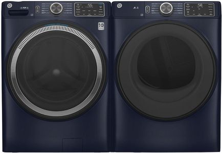 GE® Sapphire Blue Front Load Laundry Pair with a 4.8 cu. ft. capacity front load washer and a 7.8 cu. ft. capacity front load electric dryer.Read More