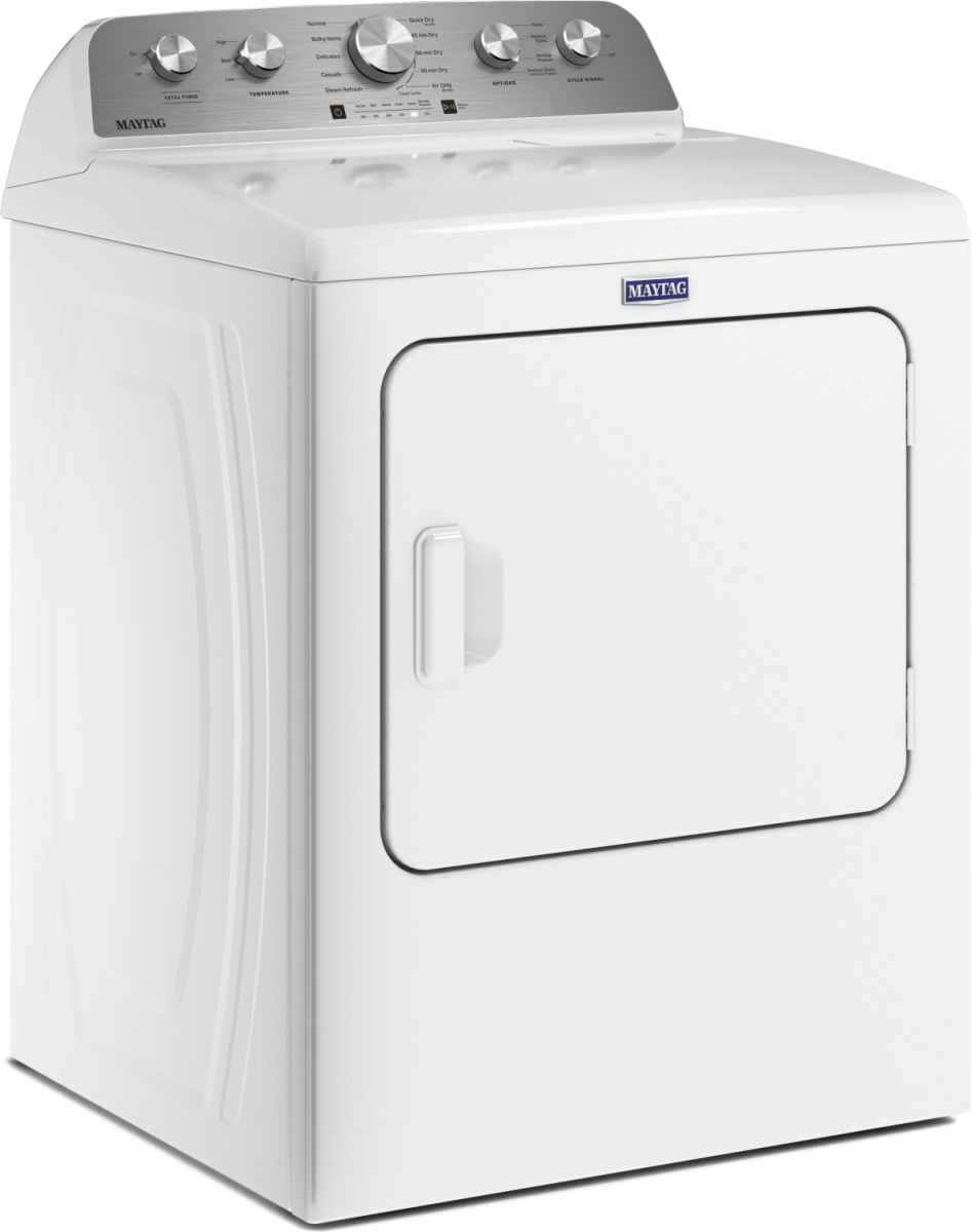 Let Maytag tackle your largest loads in this 7.0 cu. ft. capacity steam dryer. This Extra Power electric dryer boosts drying power to get thick fabrics drier the first time while Moisture Sensing prevents over- and under-drying on every load.Read More